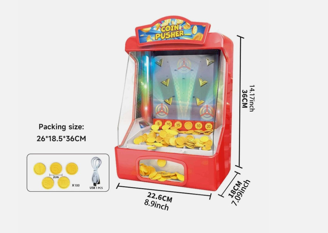 Bring arcade-style fun home with this Electronic Coin Pusher Machine, complete with exciting lights and sound effects for an immersive gameplay experience. Drop the coins, watch them push forward, and try your luck at winning—just like a real arcade machine.