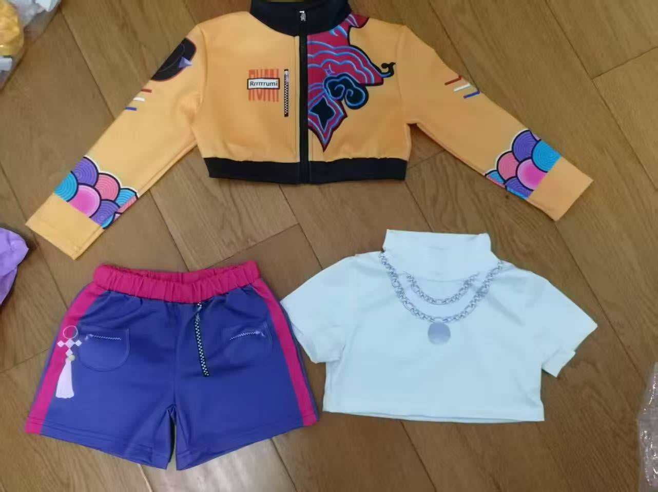 Channel the fierce energy of Rumi from K-Pop Demon Hunters with this detailed cosplay set! Perfect for conventions, photoshoots, or dress-up fun, this outfit captures her iconic look with high-quality materials and accurate design details.