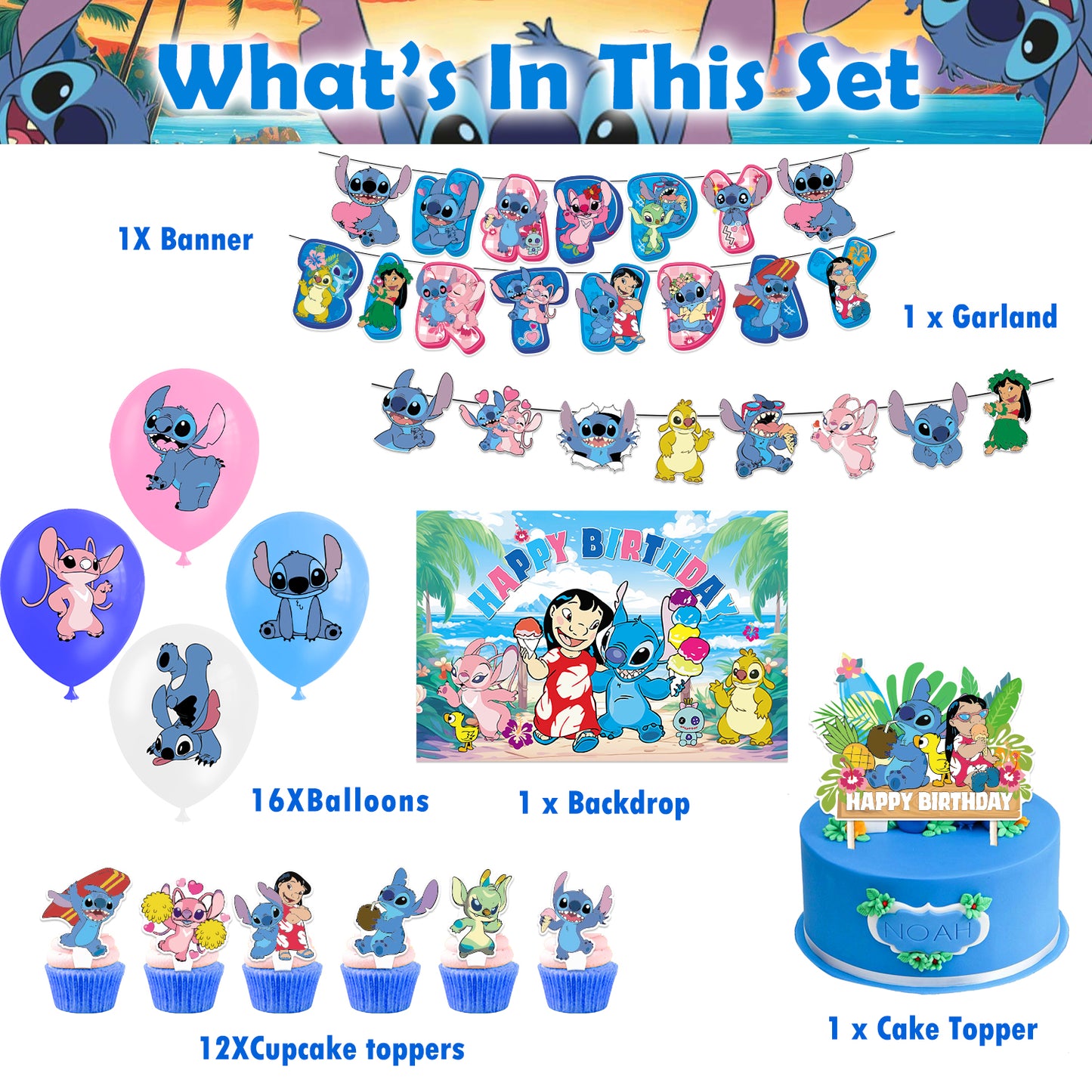 1 Banner Flag – A Stitch-themed banner to create a fun and welcoming atmosphere.